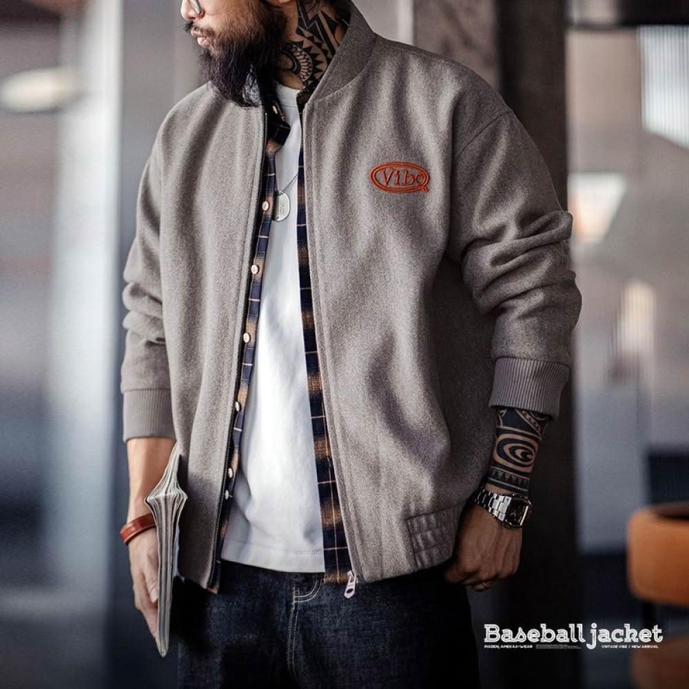 馬登工裝美式復古毛呢棒球服外套vibe刺繡短款拉鍊呢子夾克男秋冬