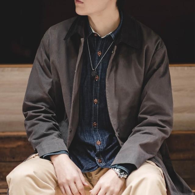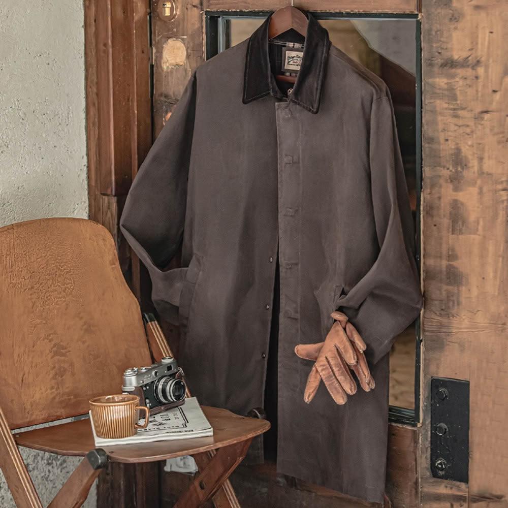 馬登工裝美式復古翻領防水油蠟風衣咖色中長款英倫風大衣外套男秋