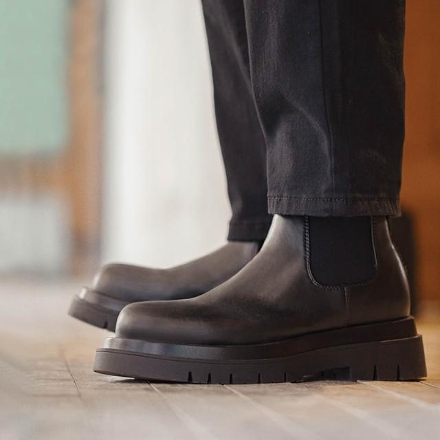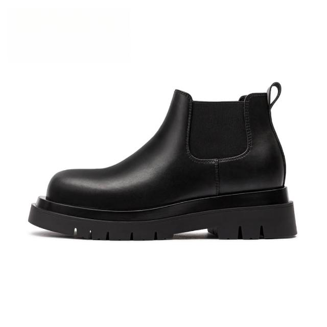 馬登工裝切爾西靴德比鞋男秋冬一脚蹬厚底增高休閒黑色真皮短靴馬丁靴