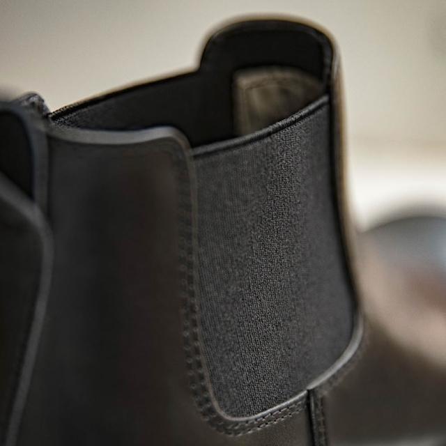 馬登工裝切爾西靴德比鞋男秋冬一脚蹬厚底增高休閒黑色真皮短靴馬丁靴