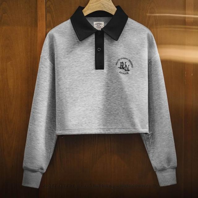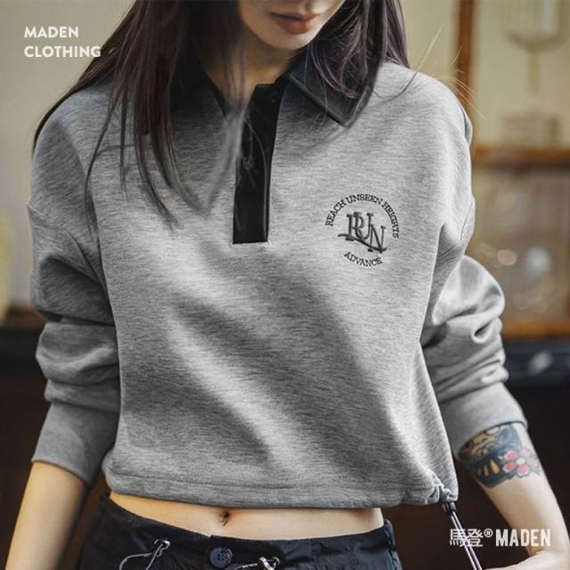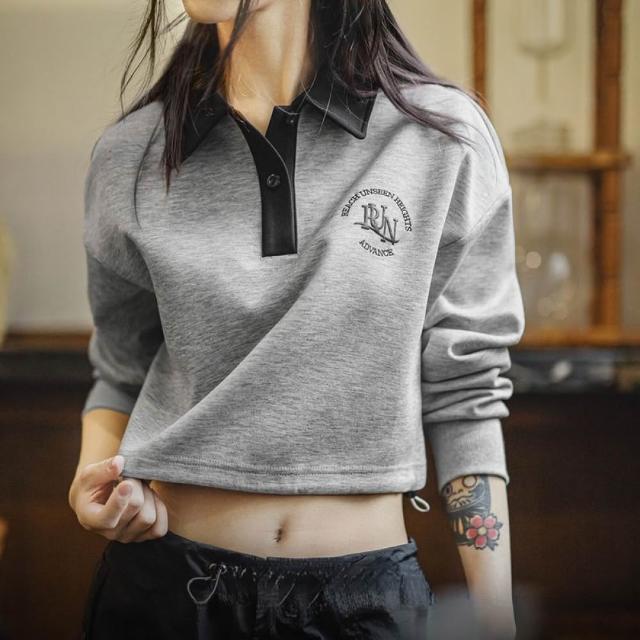 馬登工裝復古格雷系空氣層運動Polo領衛衣小心機顯腰健身長袖春季上衣