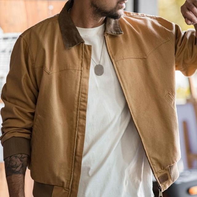 馬登工裝美式復古重磅聖達菲帆布夾克水洗純棉翻領短款外套男秋季