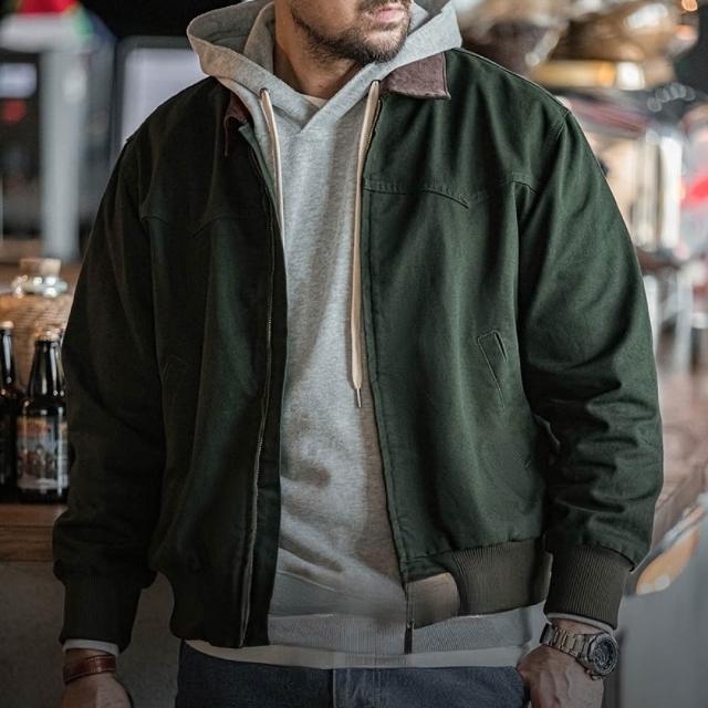 馬登工裝美式復古重磅聖達菲帆布夾克水洗純棉翻領短款外套男秋季