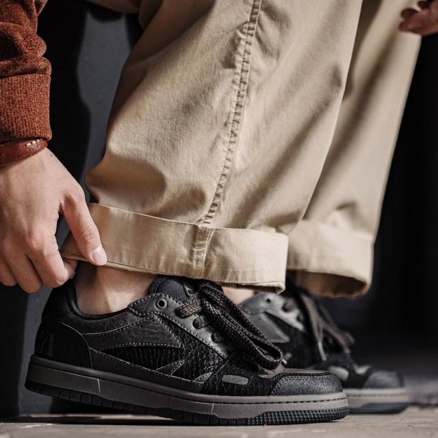 馬登工裝蛇年黑曼巴新款男鞋秋冬低幫防滑平底百搭設計感黑色休閒板鞋
