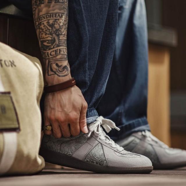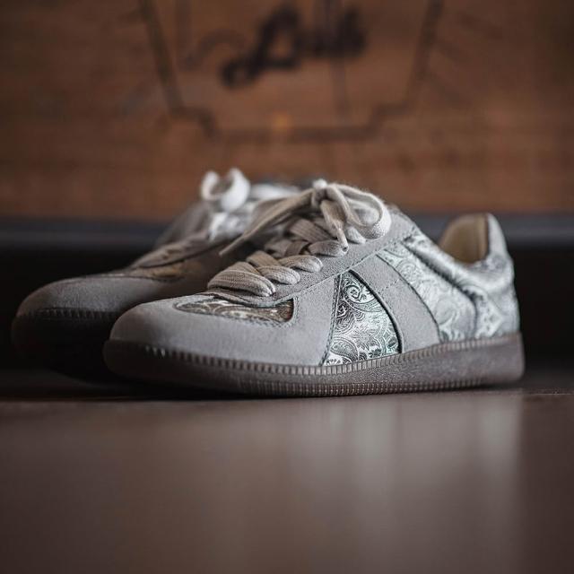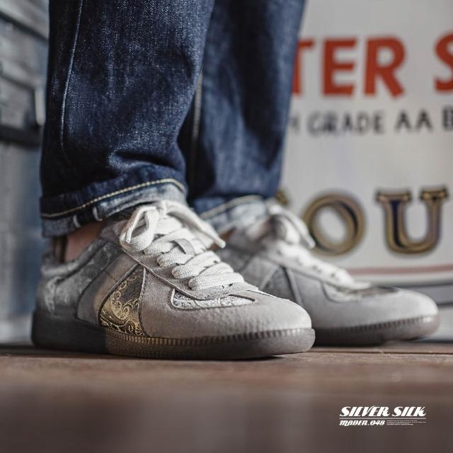 馬登工裝2025夏季新款德訓鞋男士腰果花小眾設計感板鞋絲綢休閒潮鞋子