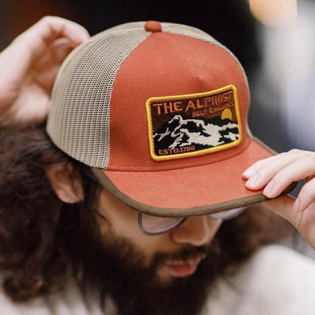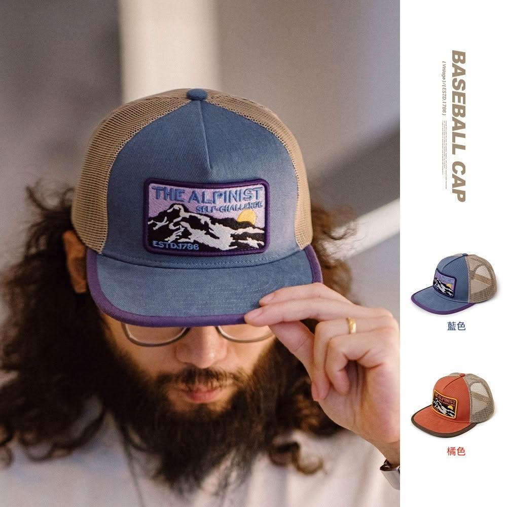 馬登工裝美式復古撞色拼接平沿棒球帽刺繡透氣網眼鴨舌帽男女