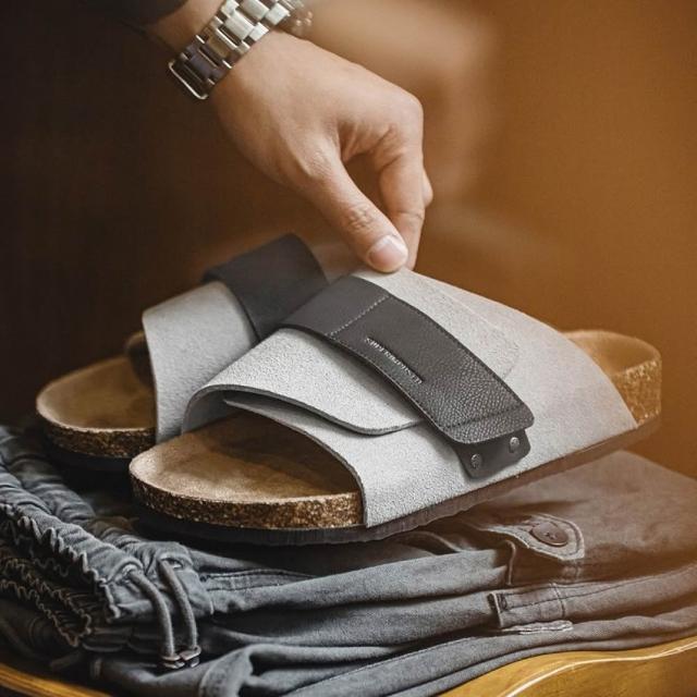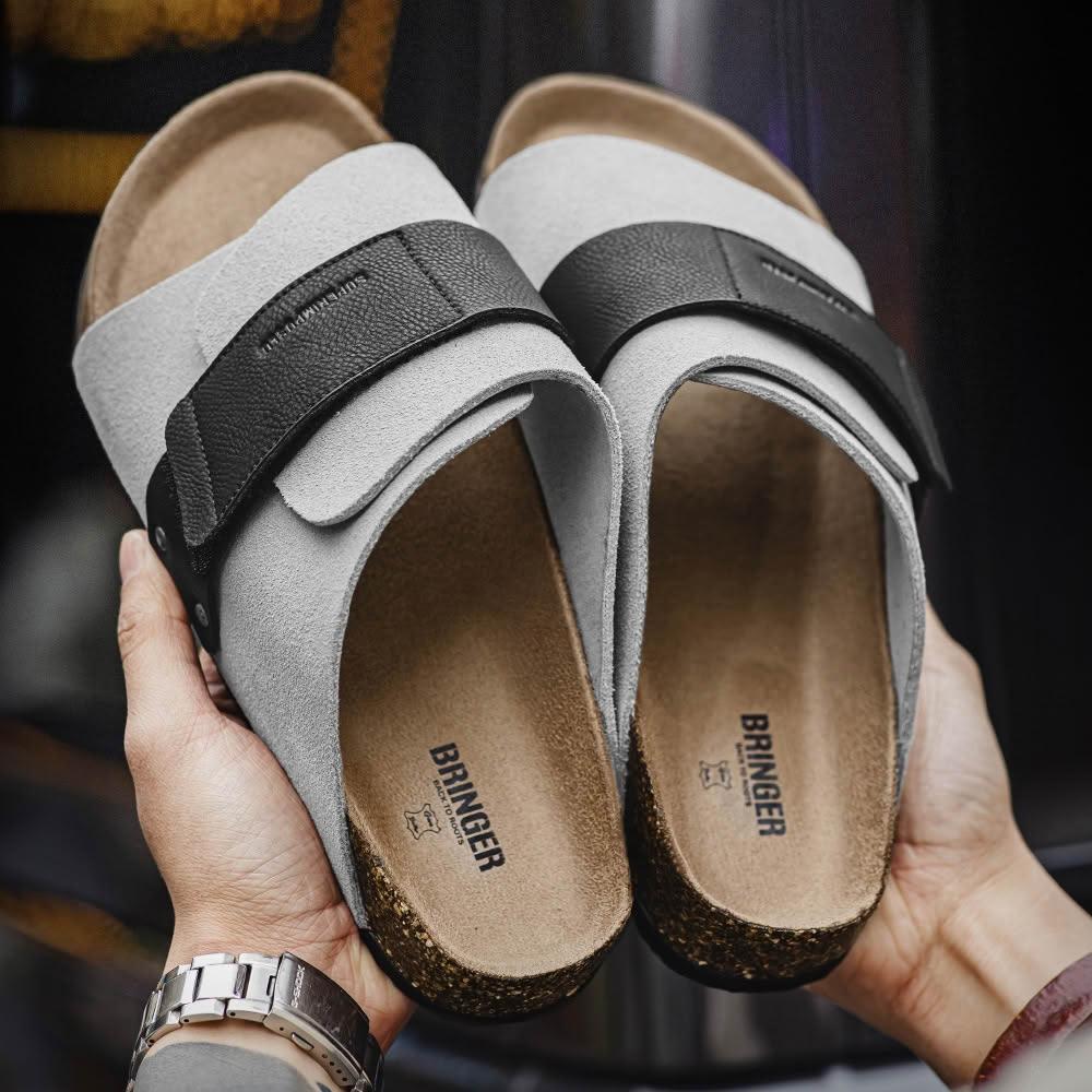 馬登工裝穆勒鞋男2025夏季新款軟木一字休閒外穿凉拖鞋魔術貼