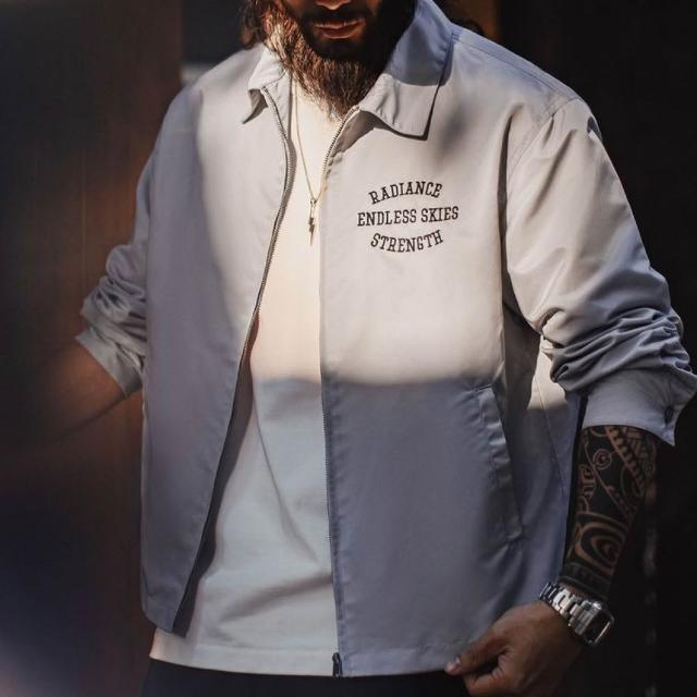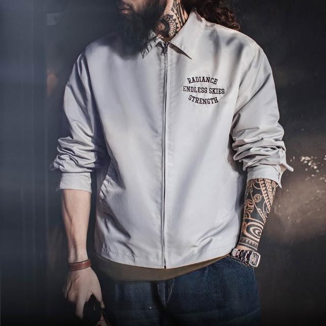 馬登工裝美式復古字母刺繡教練夾克翻領寬鬆外套廓形休閒上衣男春