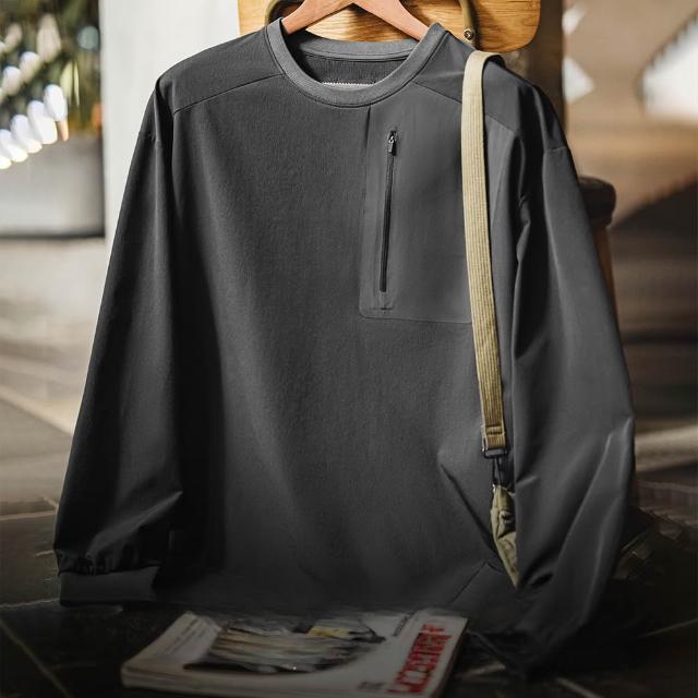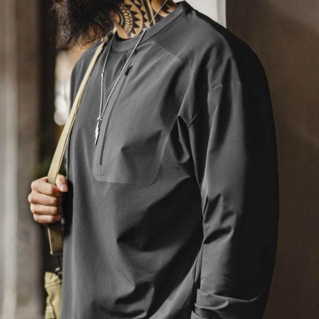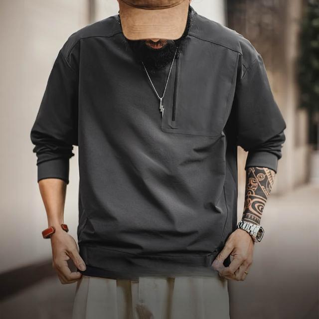 馬登工裝美式復古戶外機能風運動長袖圓領梭織落肩袖寬鬆衛衣男春