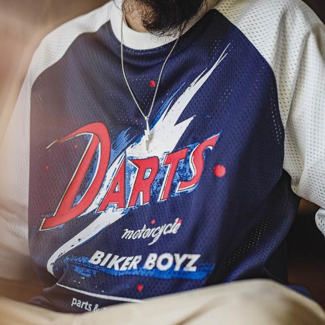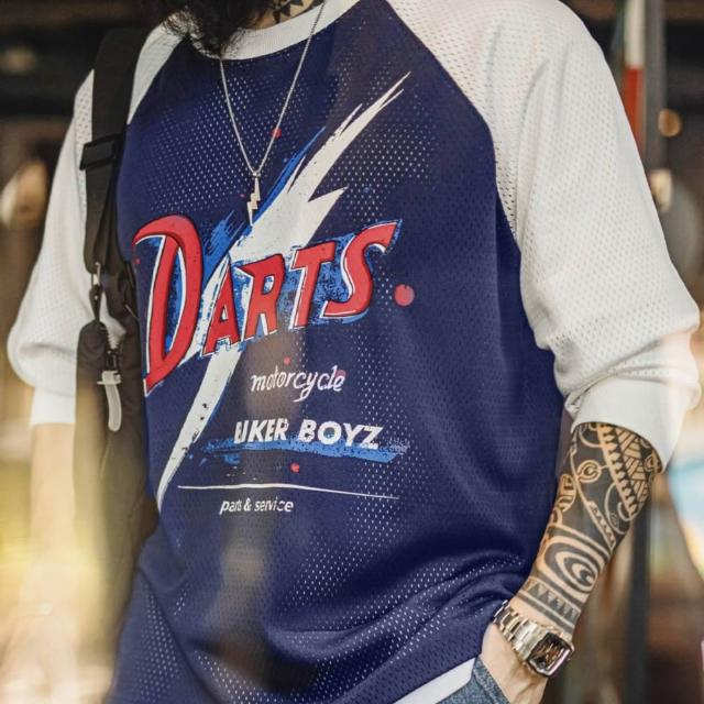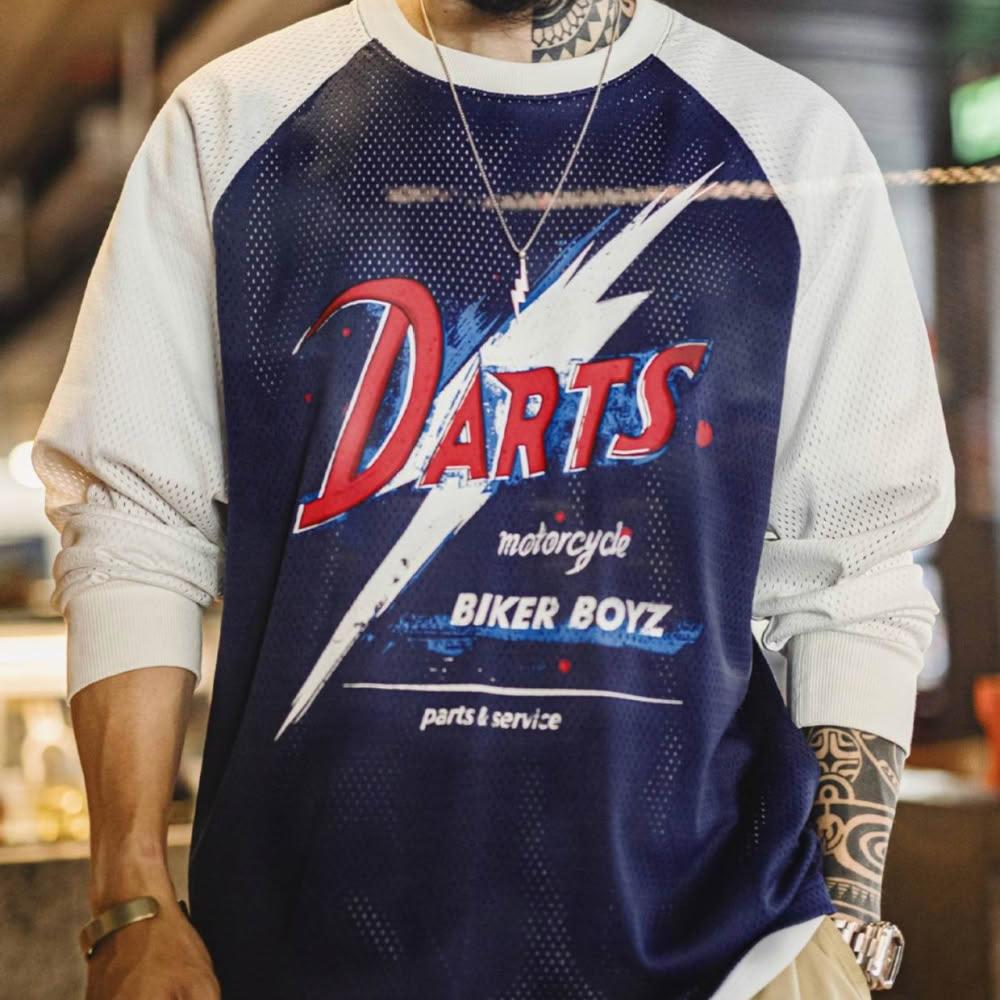 馬登工裝美式印花長袖T恤鏤空撞色針織插肩袖垂感套頭衛衣男夏秋