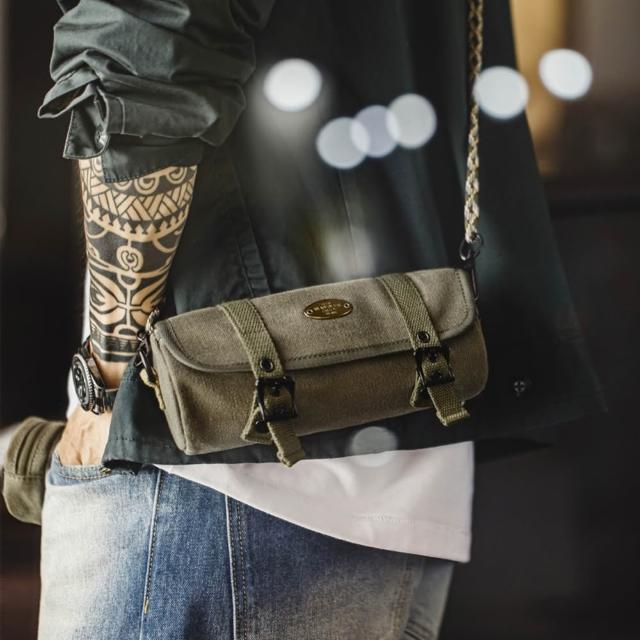馬登工裝美式復古帆布圓筒包隨身包通勤小包斜跨包包子母零錢包男