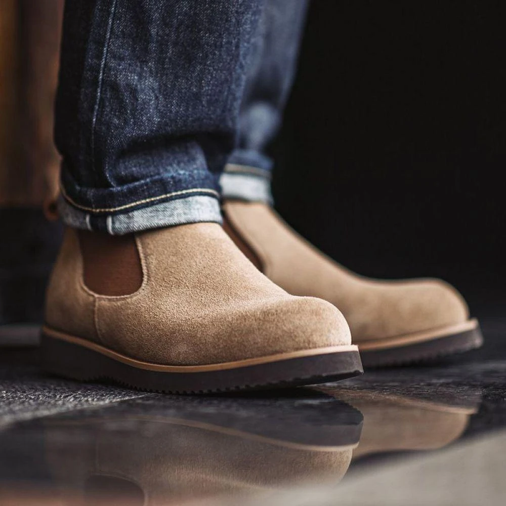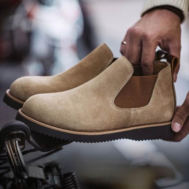 馬登工裝切爾西靴男冬季新款一脚蹬復古工裝靴百搭牛反絨圓頭休閒皮鞋