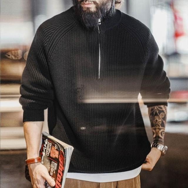 馬登工裝美式復古半拉鍊立領毛衣套頭打底高領針織衫上衣男秋冬