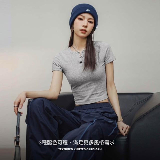 馬登工裝美式亨利衫短袖正肩修身T恤短款純色內搭打底衫棉辣妹上衣