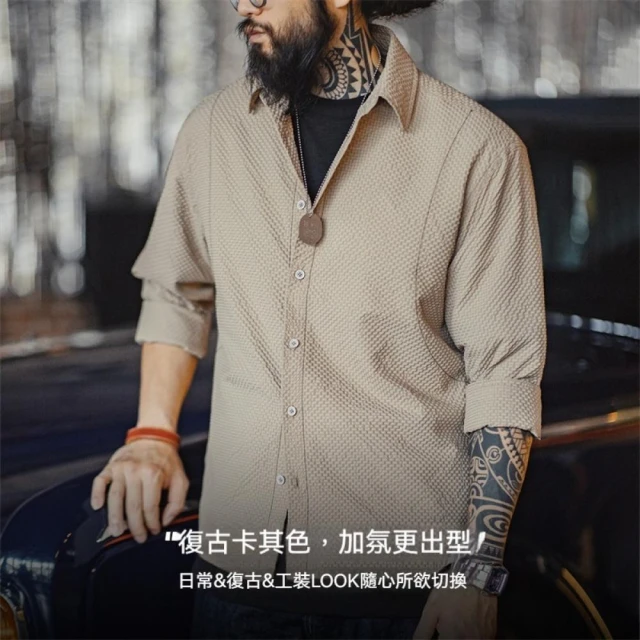 馬登工裝美式休閒泡泡紗免燙長袖襯衫肌理感薄款翻領襯衣外套男秋