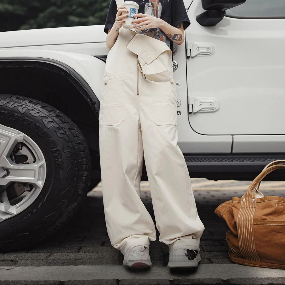 馬登工裝2025新款白色日雜寬鬆休閒時尚工裝背帶褲顯瘦連體褲子女士秋