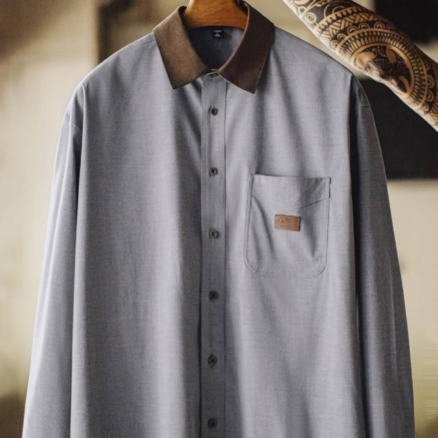 馬登工裝美式休閒燈芯絨拼接襯衫長袖老錢風灰色薄款襯衣外套男秋