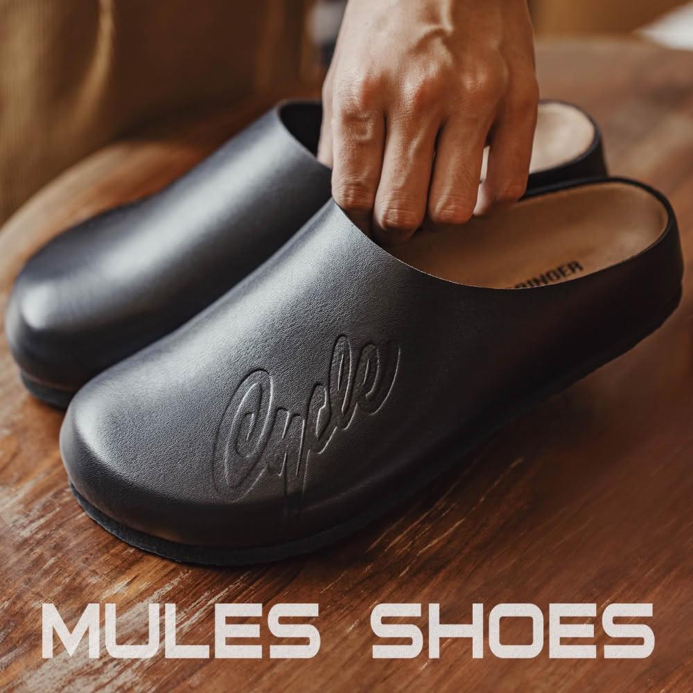 馬登工裝夏季新款男士穆勒鞋極簡包頭半拖老錢風一脚蹬休閒軟木底拖鞋