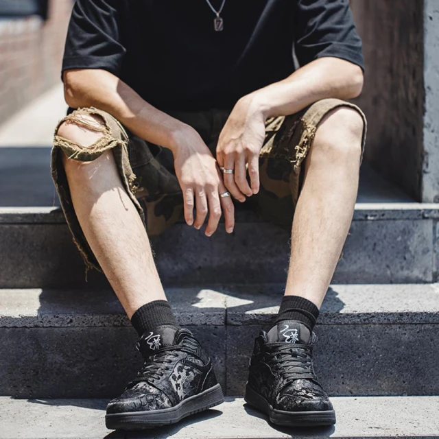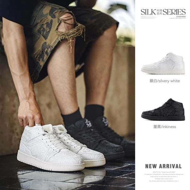 馬登工裝MRA絲綢高幫鞋男款2025新款夏季中幫厚底運動休閒板鞋刺繡小白鞋