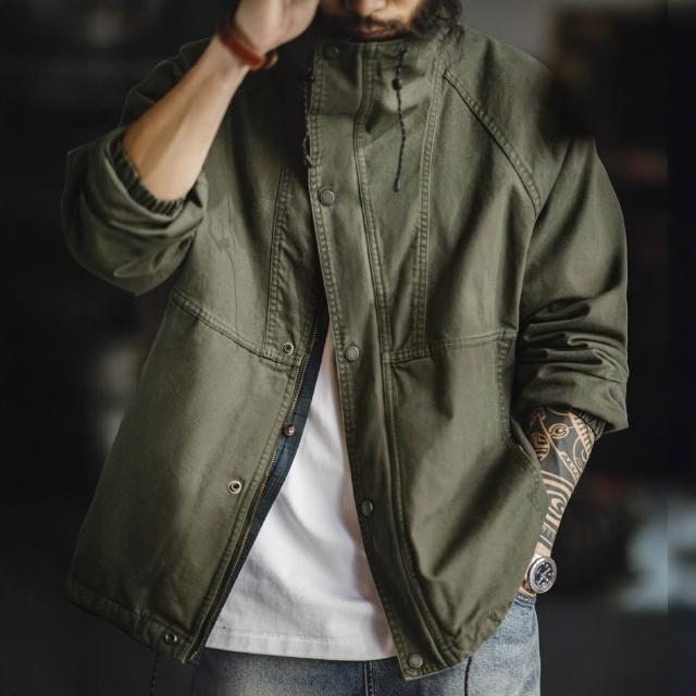 馬登工裝美式復古立領M65夾克防風廓形軍綠色硬漢vintage外套男秋