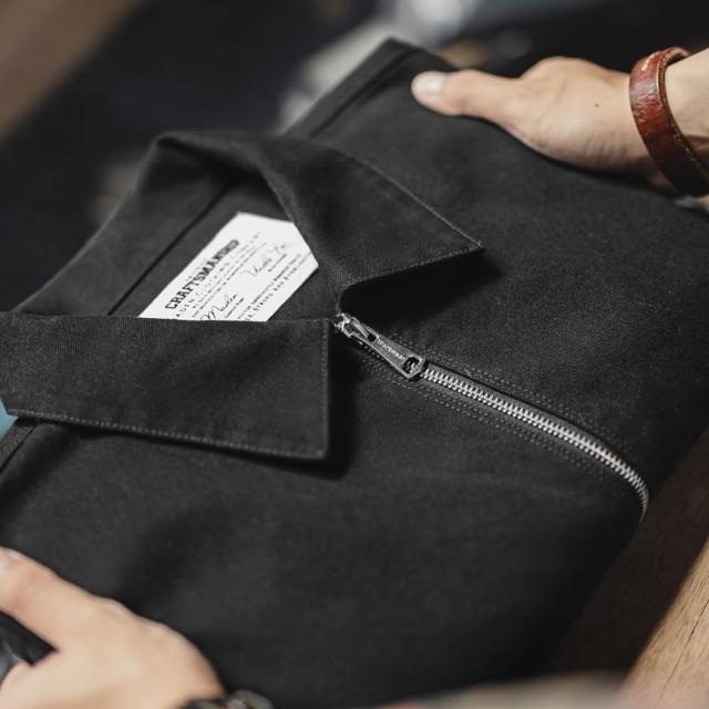 馬登工裝美式教練夾克翻領痞帥硬挺重磅短款黑色純棉行政外套男秋