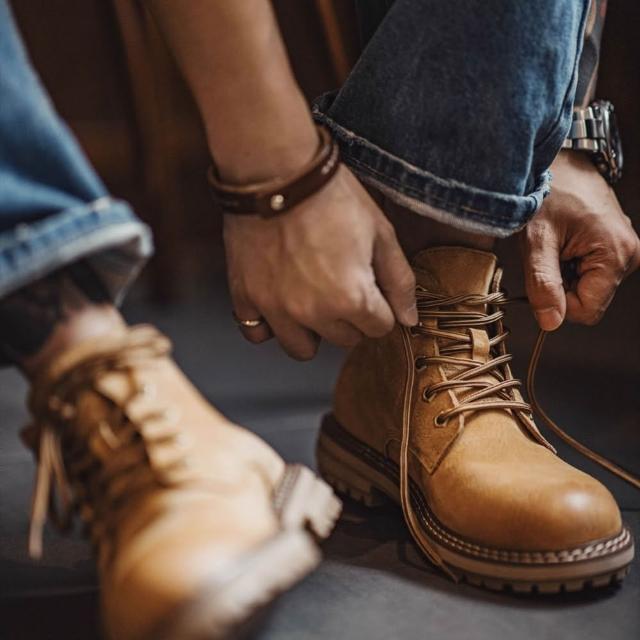 馬登工裝大黃靴秋季2025新款男士休閒中幫馬丁靴子戶外美式復古工裝靴