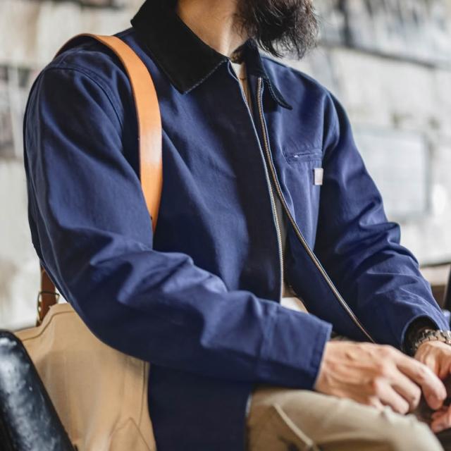 馬登工裝美式底特律藏青色夾克獵裝J001美式巴恩風翻領外套男秋