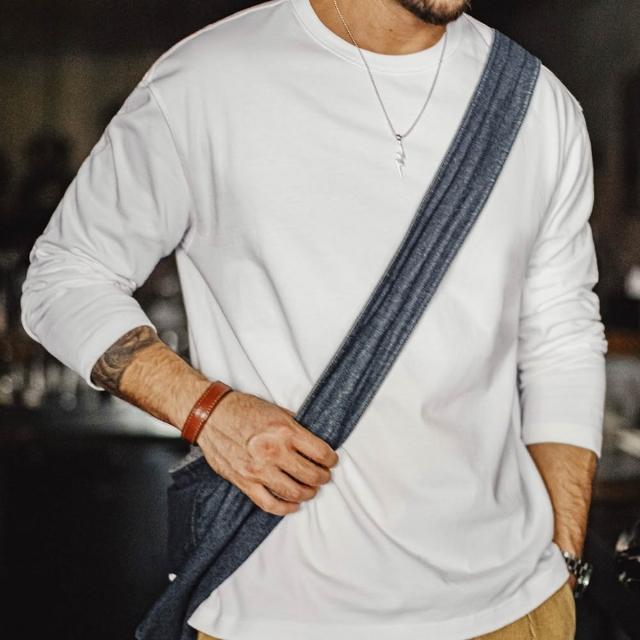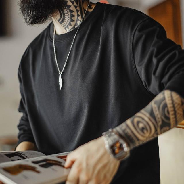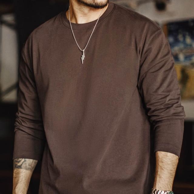 馬登工裝新疆純棉長袖T恤純色內搭打底白色重磅高克重體恤男秋季