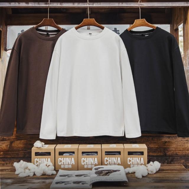 馬登工裝新疆純棉長袖T恤純色內搭打底白色重磅高克重體恤男秋季