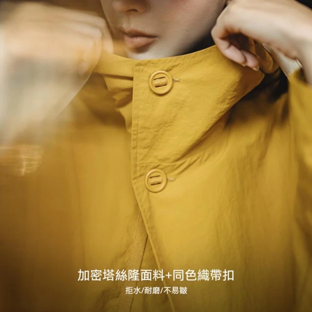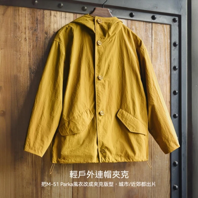 馬登工裝薑黃色戶外薄款寬鬆梭織連帽抽繩防風工裝夾克休閒外套女士秋