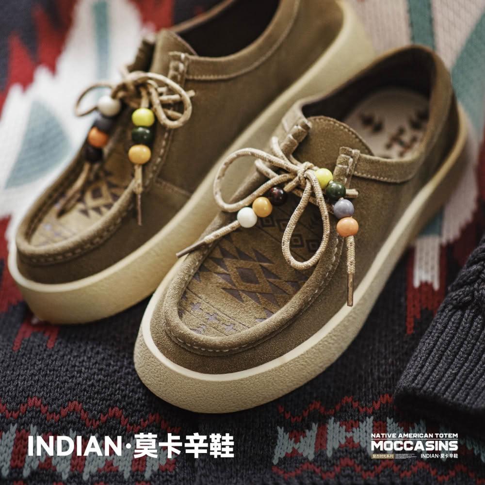馬登工裝莫卡辛鞋男士秋季新款納瓦霍老錢風工裝袋鼠鞋子厚底休閒皮鞋