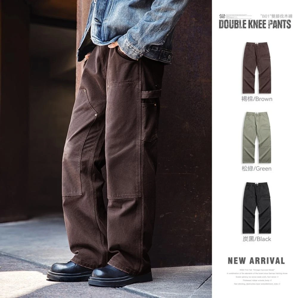 馬登工裝MRA美式休閒B01雙膝伐木褲直筒帆布法工褲軍綠色長褲男早秋