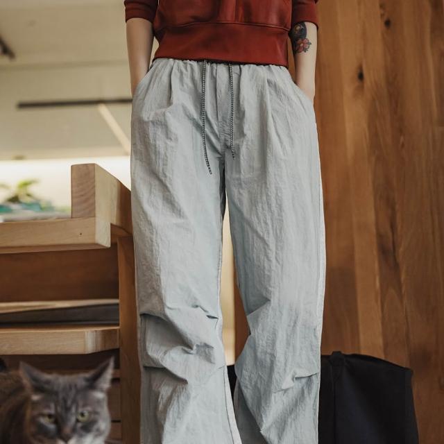 馬登工裝灰色山系褶皺機能輕戶外直筒工裝降落傘兵運動休閒褲子女士秋