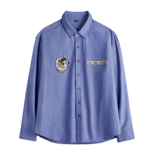 馬登工裝美式休閒牛津紡長袖襯衫藍色襯衣外套純棉牛津布薄款男秋