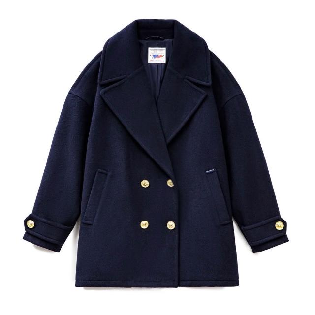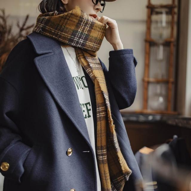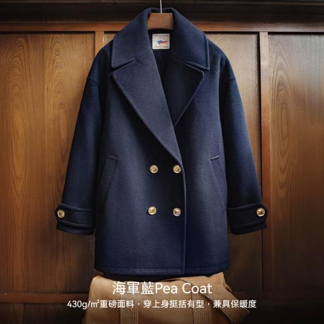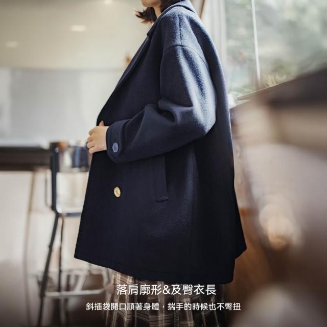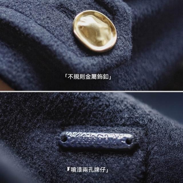 馬登工裝藍色復古中長款絨面外套加厚保暖重磅雙排扣毛呢子大衣女士秋