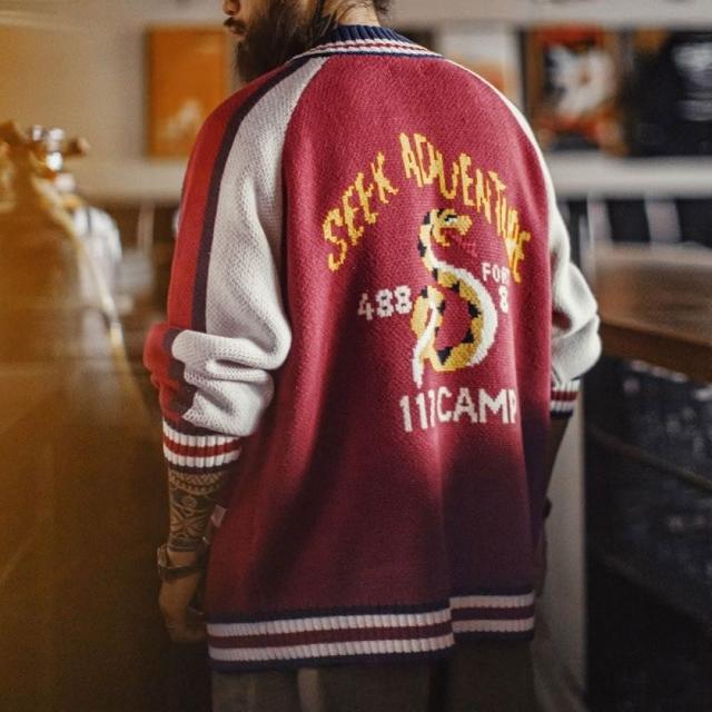 馬登工裝美式橫須賀刺繡夾克日系紅色棒球領毛織垂感開衫外套男秋