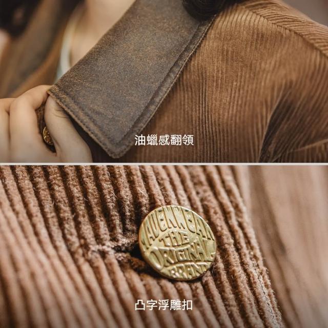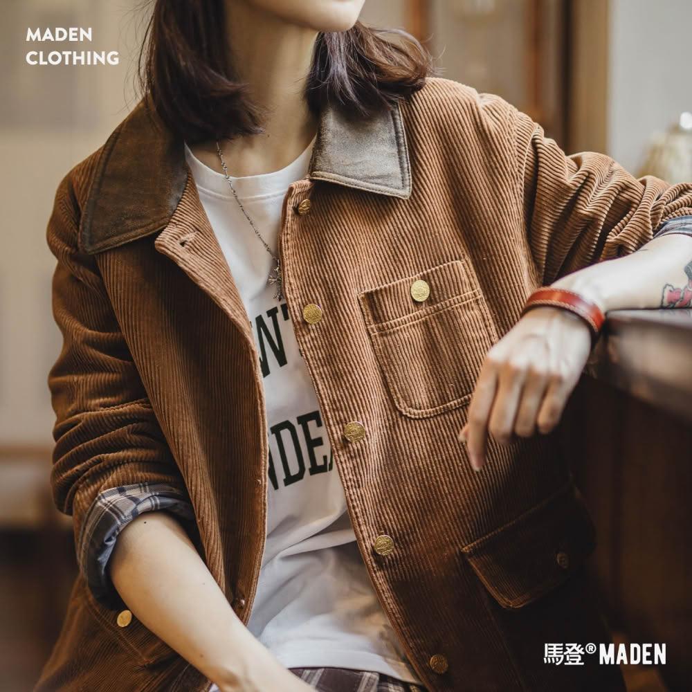馬登工裝復古美拉德撞棕色燈芯條絨麂皮翻領工裝獵裝夾克外套上衣女秋