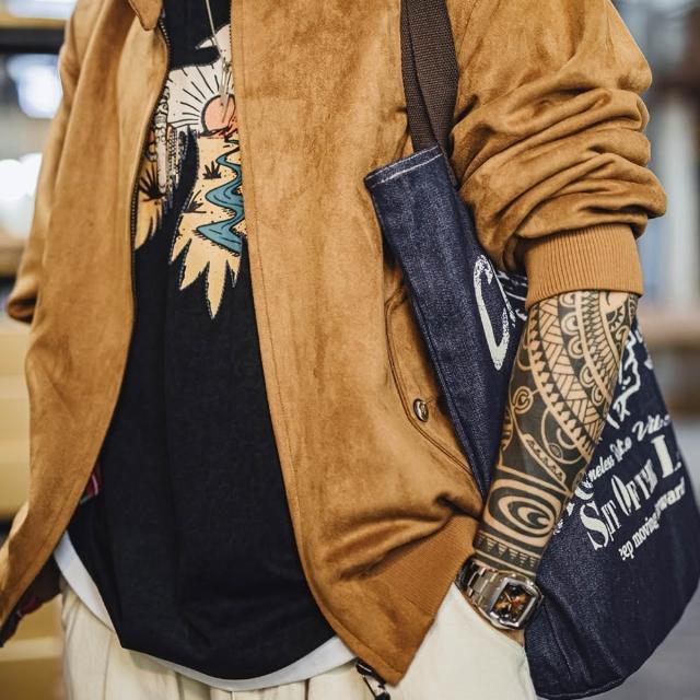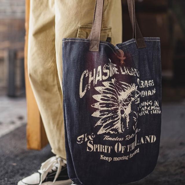馬登工裝美式復古牛仔大容量托特包丹寧通勤單肩包做舊手提包包男