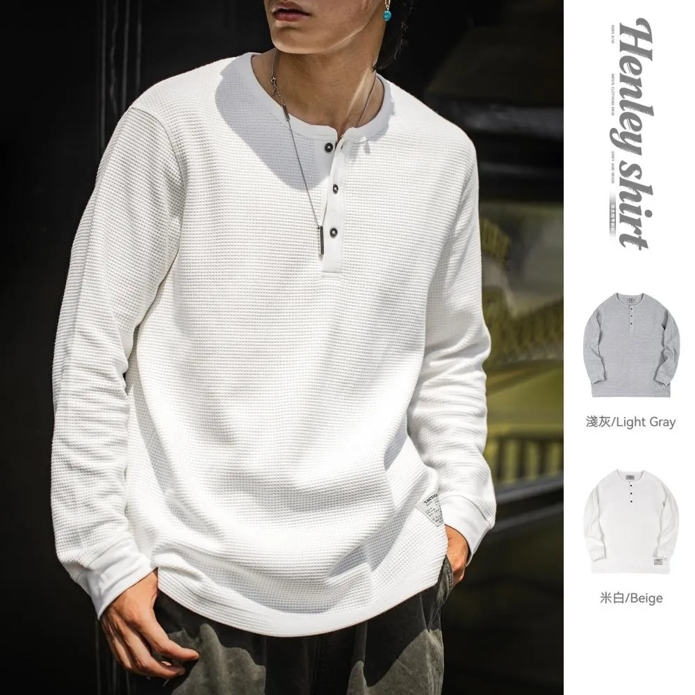 馬登工裝MRA亨利領正肩打底衫300g重磅白色長袖T恤上衣內搭老錢風男秋