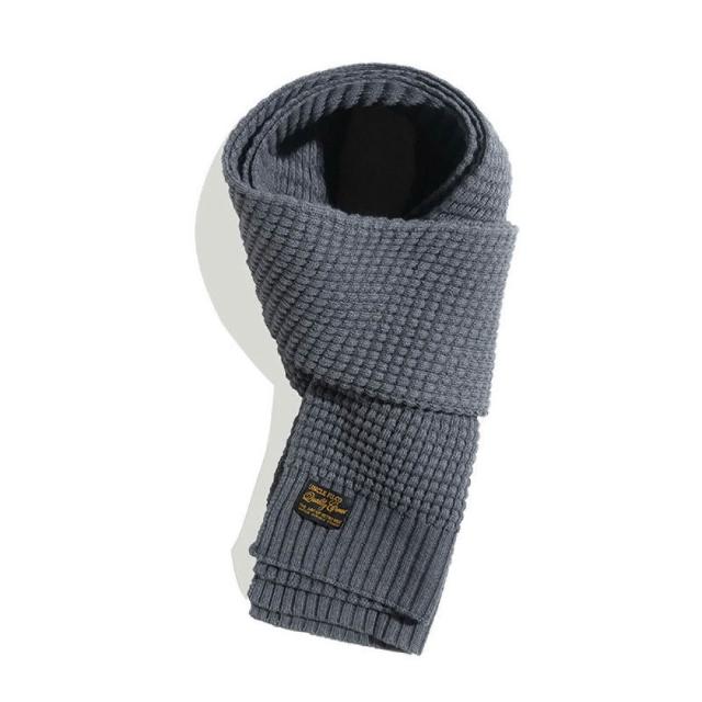 馬登工裝美式復古淺灰針織毛線圍巾秋冬含羊毛純色保暖圍脖男潮