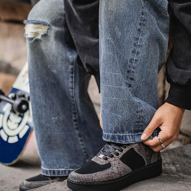 馬登工裝黑曼巴空軍板鞋男2025秋季新款厚底運動休閒鞋百搭復古小黑鞋
