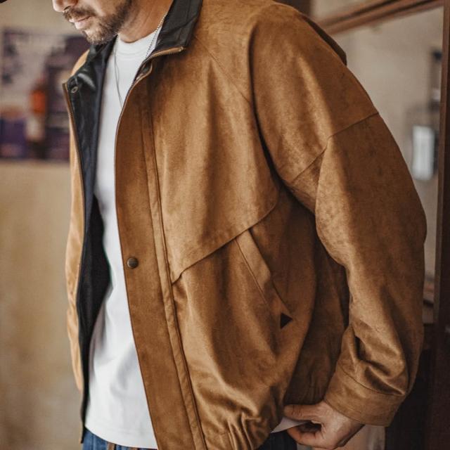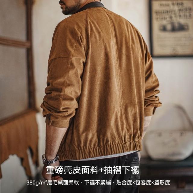 馬登工裝美式復古麂皮絨教練夾克立領短款美拉德翻毛皮外套男秋