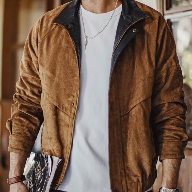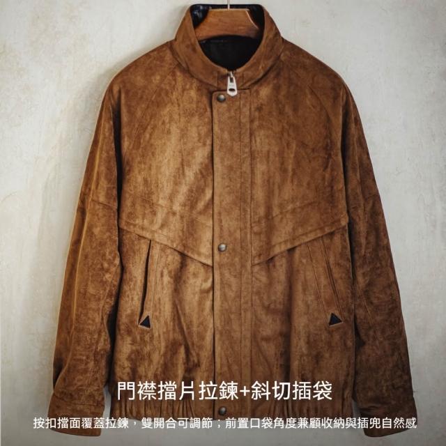馬登工裝美式復古麂皮絨教練夾克立領短款美拉德翻毛皮外套男秋