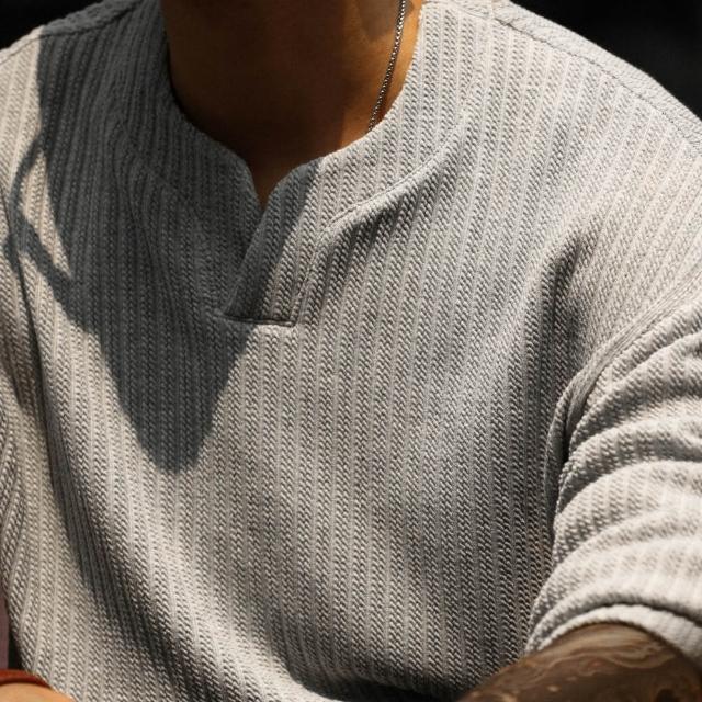 美式高級感提花小V領長袖T恤男330g重磅肌理感疊穿衛衣