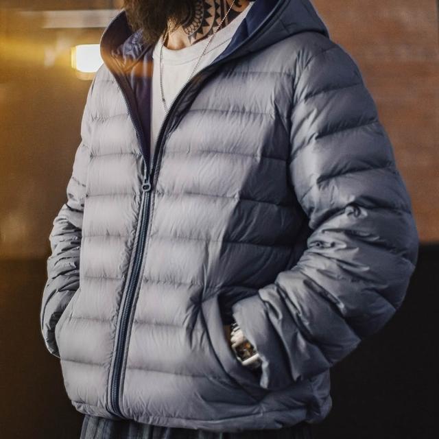 馬登工裝美式輕薄排骨羽絨服男秋冬保暖內膽短款羽絨夾克(連帽)