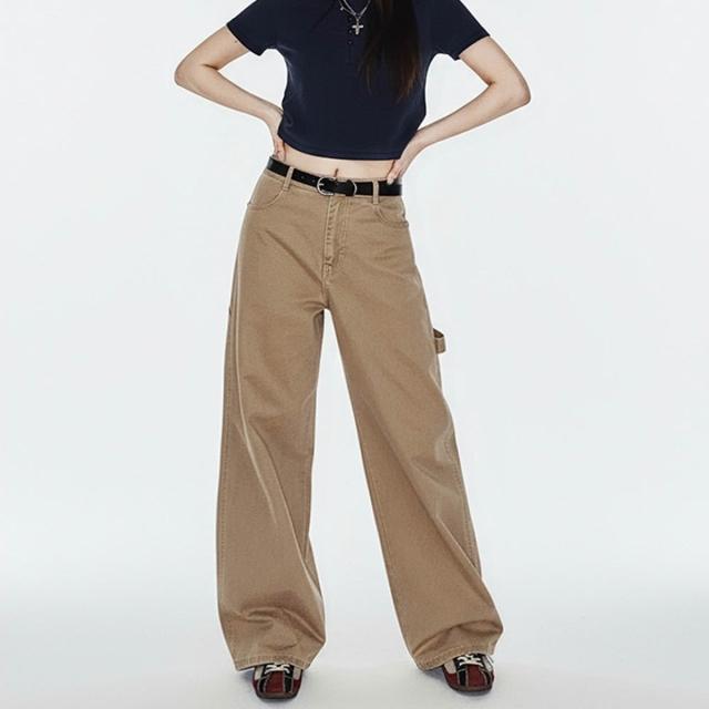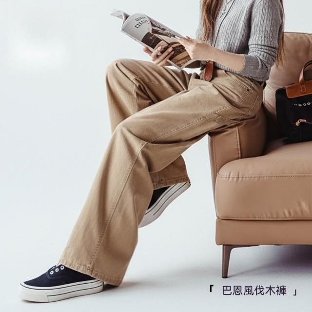 馬登工裝卡其色復古工裝巴恩風伐木褲純棉窄版直筒顯瘦長褲子女士秋冬