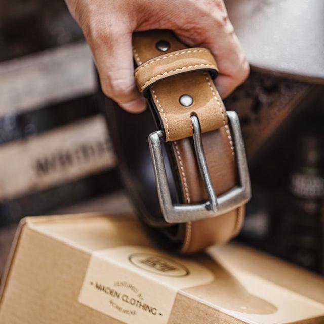 馬登工裝美式復古酋長皮帶頭層牛皮腰帶單針扣頭真皮褲腰帶男款