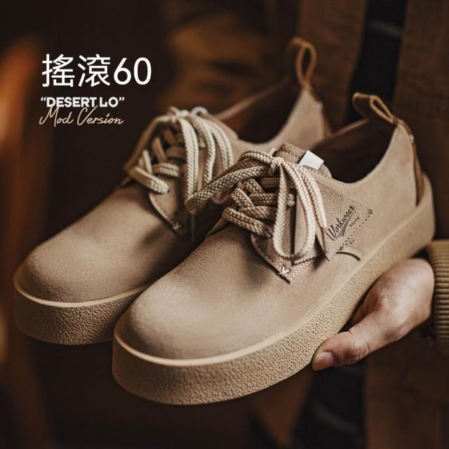 馬登工裝搖滾60復古板鞋男士2025冬季新款休閒低幫沙漠德比鞋厚底皮鞋