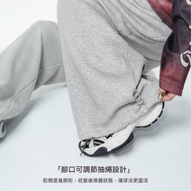 馬登工裝淺灰色闊腿直筒休閒長衛褲鬆緊腰抽繩束脚垂墜感糯米褲子女冬