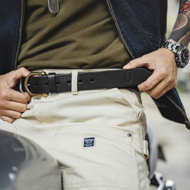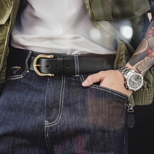 馬登工裝美式復古黃銅扣頭皮帶頭層牛皮腰帶單針真皮褲腰帶男款